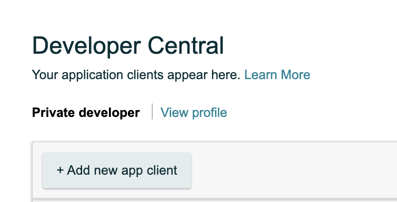 Once the developer profile is approved click on the "+ Add New App Client" button similar to the screenshot below